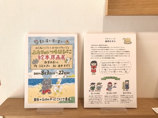 しかも今回展示の絵本作家さんは、にこにこ書店の地元・目白育ちの田中チズコさん。わたしが店をオープンしてまだ間もない頃、「地元に絵本屋さんができた~と思って!」と、ふらりと遊びに来てくださったのが最初のご縁です。