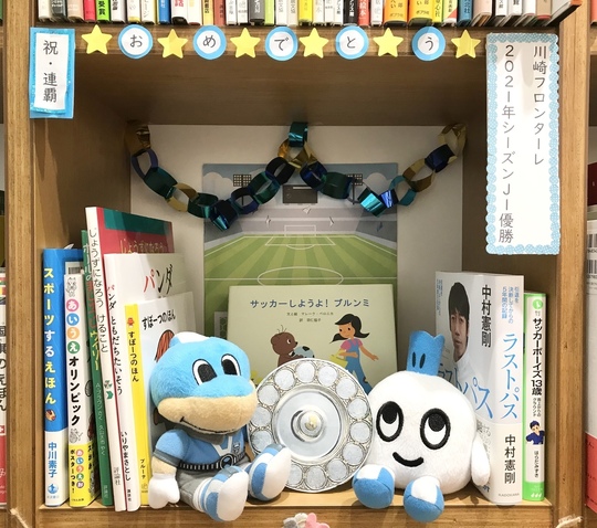 と、このようにサッカーの話ではついつい熱くなる店主ですが(汗)、小さな絵本の店の一角には小さな小さなスポーツ(フロンターレ)コーナーもございます。フロサポの皆さまも、もちろん他サポの方々も、シーズンオフにでもよろしければぜひそんな絵本屋へぜひ一度ご来店いただけたら嬉しいです。心よりお待ちしております!