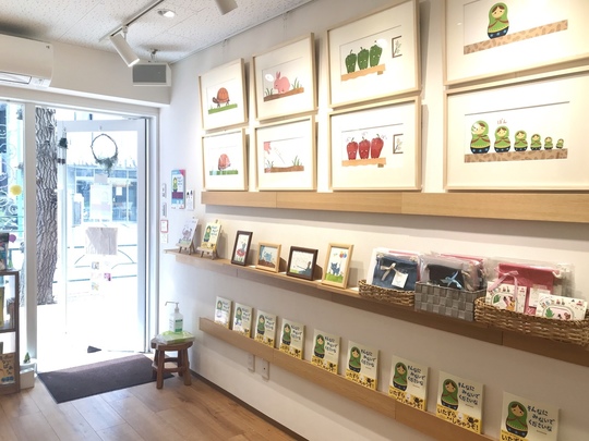 今回の原画展のためにご用意いただいた販売用の「描き下ろしミニ原画」は瞬く間に旅立ってしまい一点を残すのみ。一点ずつ異なるデザインで、こちらも手描きの「イラスト入り巾着」やそのほかのグッズ、「サイン本」も数量限定で販売中です。