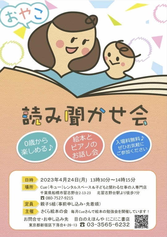 月に一度、船橋市のCue(キュー)さんで絵本の勉強会を開催している「さくら絵本の会」のメンバーが、のんびりと穏やかな絵本の時間をお届けします。