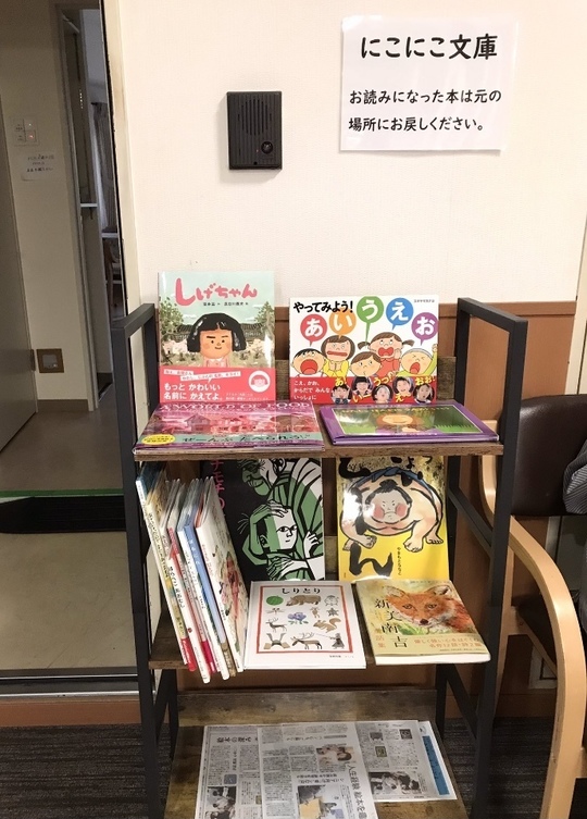 「絵本を楽しむ会」でご紹介した絵本は、サン・ラポール目白さまのコミュニティスペース「にこにこ文庫」(嬉しいことに施設さまで名付けてくださいました)に、ご利用者さまがいつでも手に取れるよう置いていただいています。